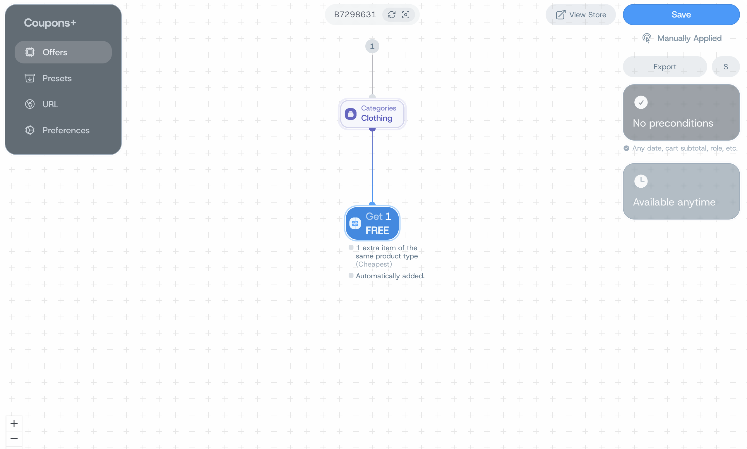 Coupons+ gives you a set of powerful components including conditions, filters and a variety offer types. You can then use these powerful tools to build your promos according to your requirements.