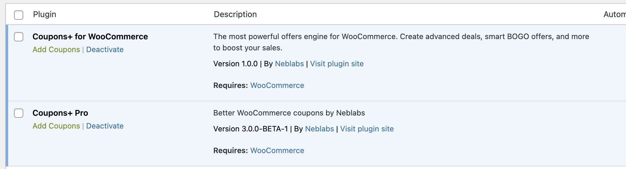 • You will now see Coupons+ for WooCommerce and Coupons+ Pro.